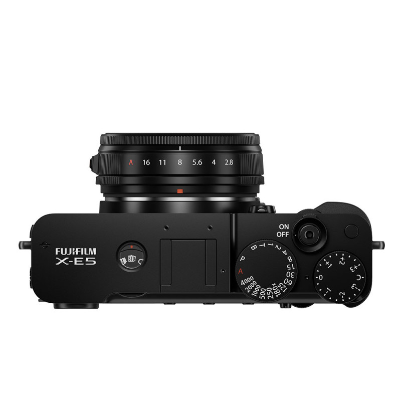 Le Fujifilm X-E5 est un appareil photo hybride à la fois compact, léger (445 g) et puissant, conçu aussi bien pour les passionnés de photo que pour les débutants. Doté d’un capteur rétro-éclairé X-Trans™ CMOS 5 HR de 40 Mégapixels et du processeur X-Processor 5, il offre une qualité d’image exceptionnelle, même dans des conditions exigeantes. Il dispose d’un système de stabilisation mécanique performant sur cinq axes, compensant jusqu’à 7,0 IL au centre et 6,0 IL au bord de l’image. Toutes ces caractéristiques font du Fujifilm X-E5 un appareil du quotidien facile à utiliser et capable de s’adapter aux situations les plus difficiles.