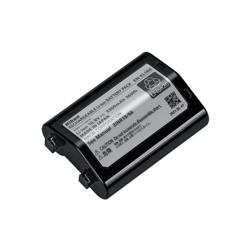 Accumulateur EN-EL18D lithium-ion rechargeable léger et ultra-compact, pour Nikon Z9. Grande capacité de 3300 mAh (10,8 V) pour un fonctionnement longue durée.
