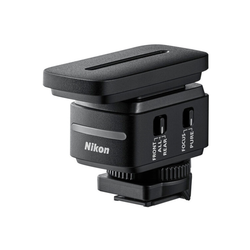 Le Nikon ME-D10 est un micro shotgun haute performance pensé pour les vidéastes qui souhaitent capturer un son précis et naturel. Conçu pour s’intégrer parfaitement aux caméras de la série ZR, il se fixe sur la griffe porte accessoires digital de l’appareil, qui assure à la fois l’alimentation et la transmission du signal, éliminant ainsi tout besoin de câbles ou de piles supplémentaires. Ce microphone propose deux modes distincts. Le mode PURE offre une réponse en fréquence de quarante hertz à vingt kilohertz pour une restitution large et détaillée, tandis que le mode FOCUS, de quatre-vingt-dix hertz à vingt kilohertz, met l’accent sur la voix en atténuant les basses superflues.